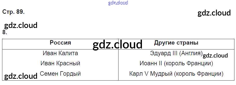 Ответ на задание стр. 89 Рабочая тетрадь История за 6 (шестой) класс Артасов, Данилов, Косулина, Соколова 2016