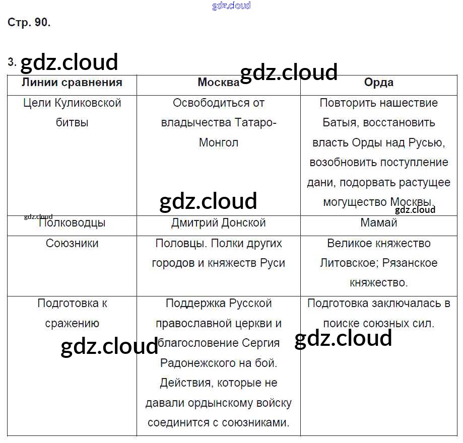 Ответ на задание стр. 90 Рабочая тетрадь История за 6 (шестой) класс Артасов, Данилов, Косулина, Соколова 2016