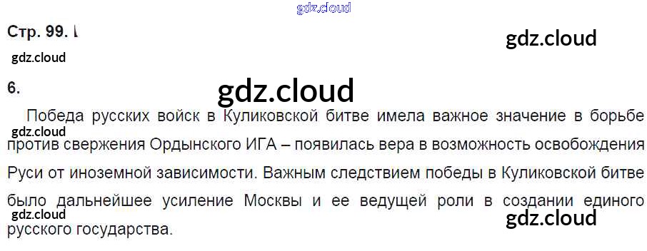 Ответ на задание стр. 99 Рабочая тетрадь История за 6 (шестой) класс Артасов, Данилов, Косулина, Соколова 2016