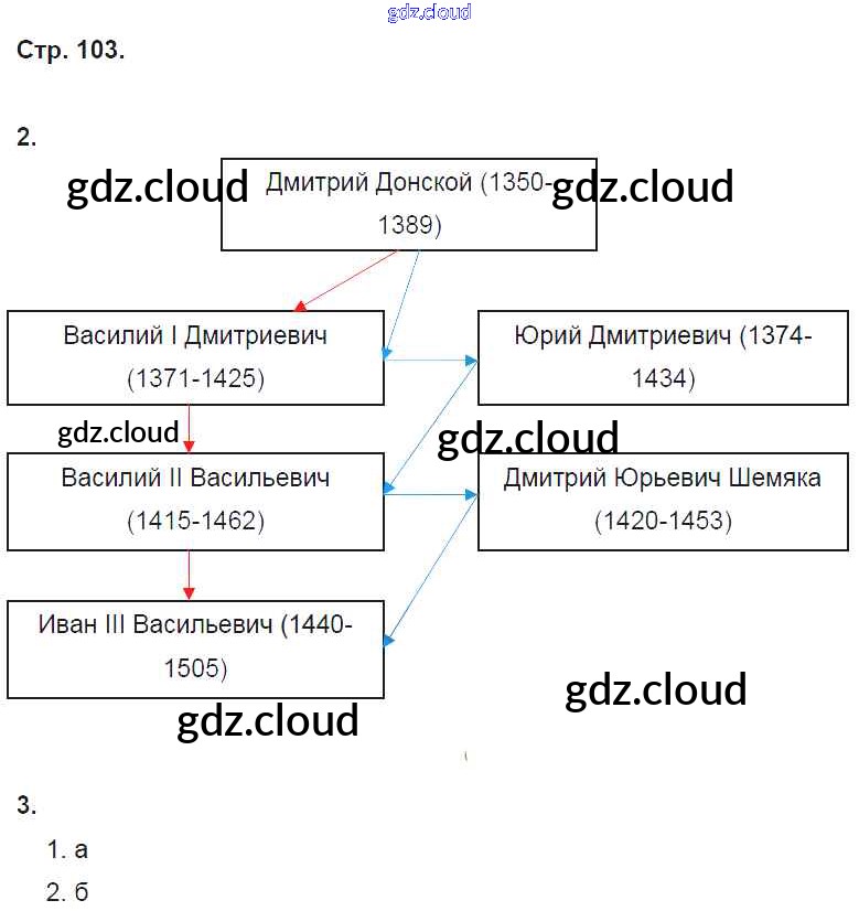 Ответ на задание стр. 103 Рабочая тетрадь История за 6 (шестой) класс Артасов, Данилов, Косулина, Соколова 2016