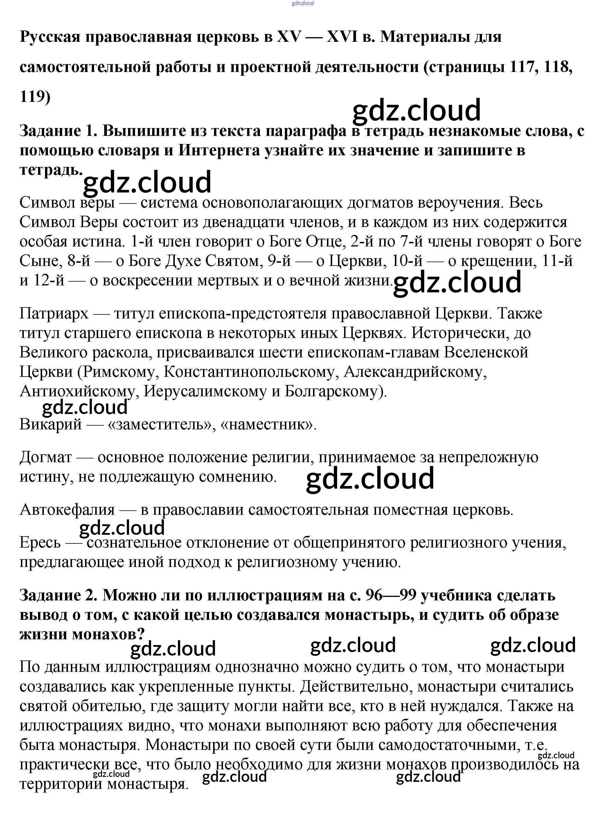 Ответ на задание стр. 117 Рабочая тетрадь История за 6 (шестой) класс Артасов, Данилов, Косулина, Соколова 2016