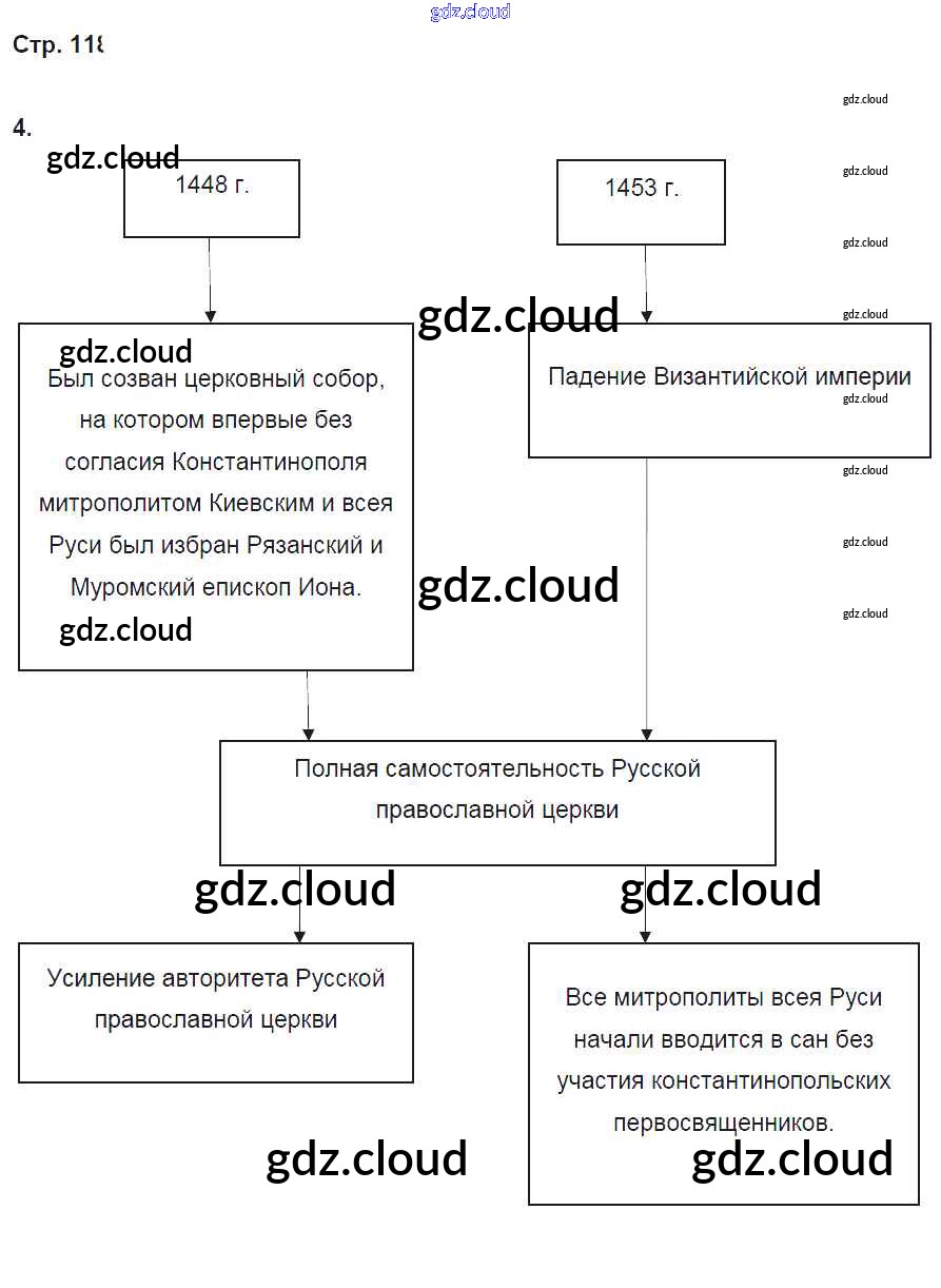 Ответ на задание стр. 118 Рабочая тетрадь История за 6 (шестой) класс Артасов, Данилов, Косулина, Соколова 2016