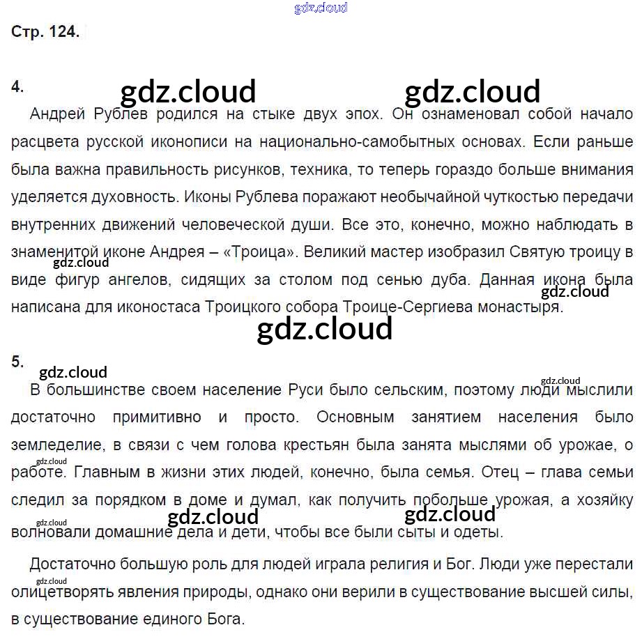 Ответ на задание стр. 124 Рабочая тетрадь История за 6 (шестой) класс Артасов, Данилов, Косулина, Соколова 2016