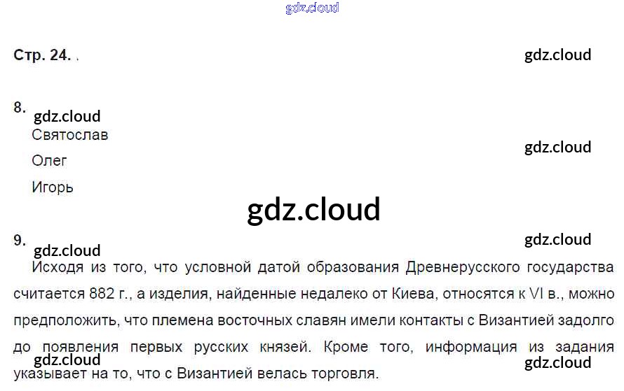Ответ на задание стр. 24 Рабочая тетрадь История за 6 (шестой) класс Артасов, Данилов, Косулина, Соколова 2016
