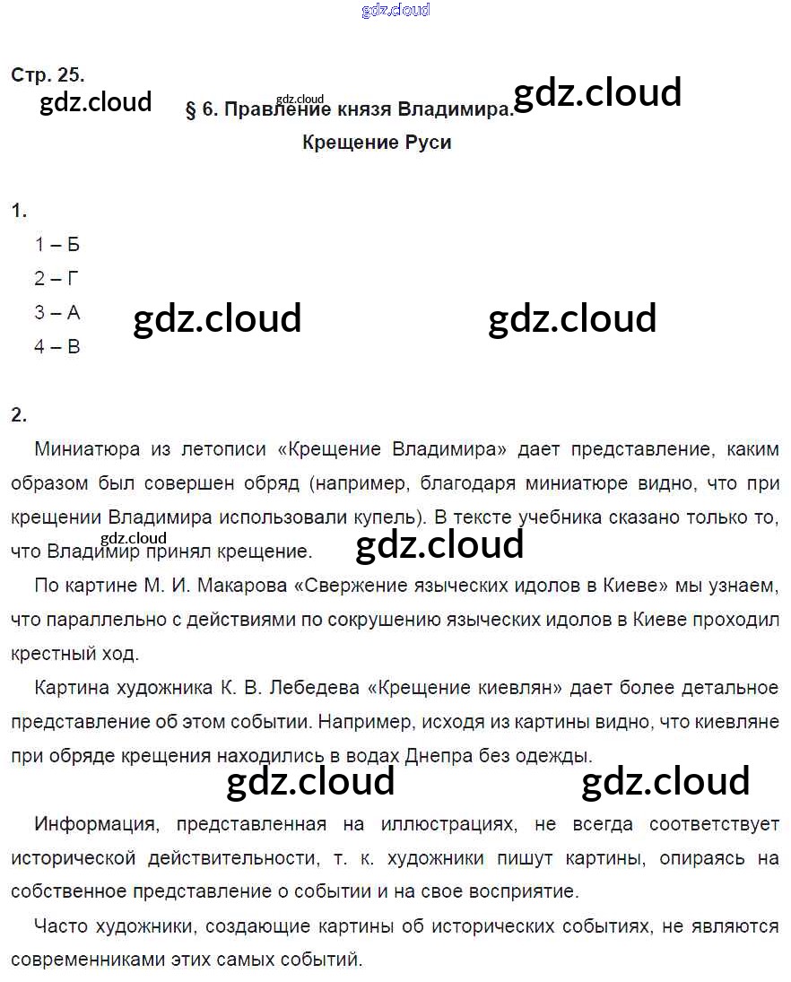 Ответ на задание стр. 25 Рабочая тетрадь История за 6 (шестой) класс Артасов, Данилов, Косулина, Соколова 2016