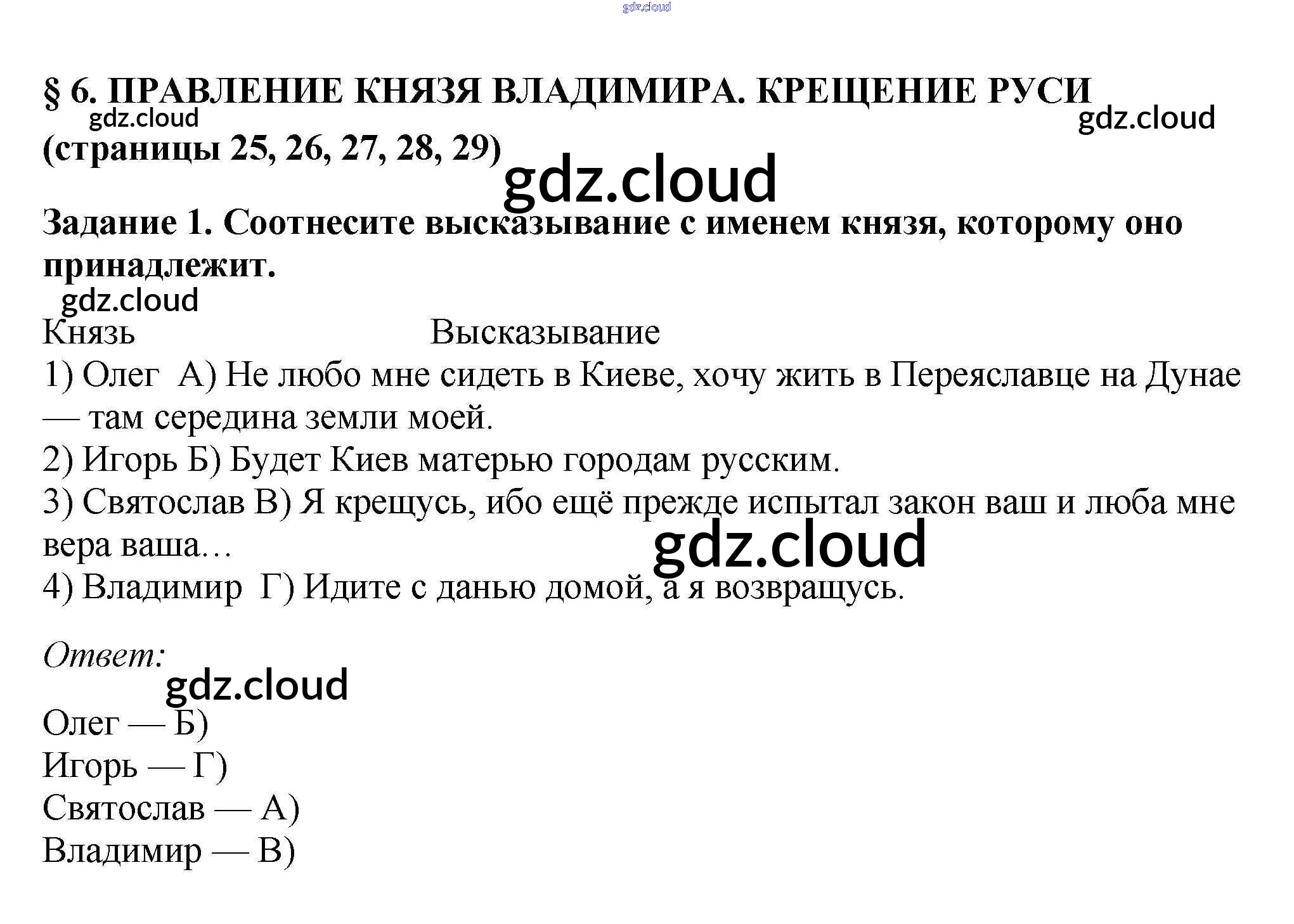 Ответы к §6 по Истории 6 класс Рабочая тетрадь Артасов Просвещение