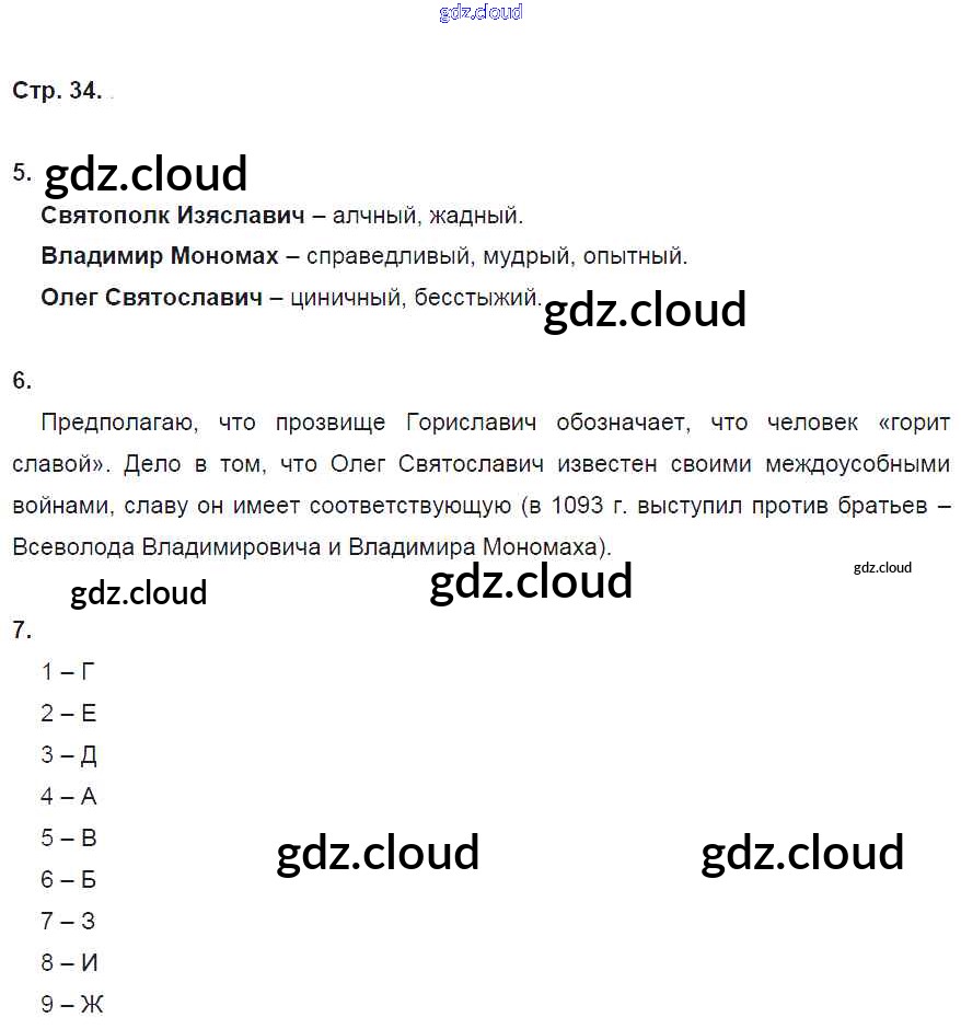 Ответ на задание стр. 34 Рабочая тетрадь История за 6 (шестой) класс Артасов, Данилов, Косулина, Соколова 2016