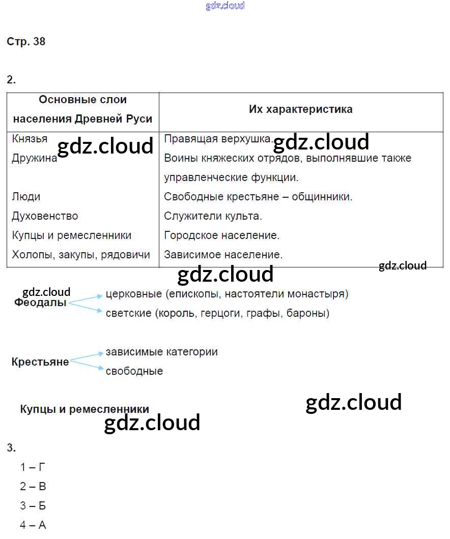 Ответ на задание стр. 38 Рабочая тетрадь История за 6 (шестой) класс Артасов, Данилов, Косулина, Соколова 2016