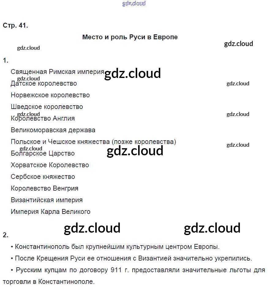 Ответ на задание стр. 41 Рабочая тетрадь История за 6 (шестой) класс Артасов, Данилов, Косулина, Соколова 2016