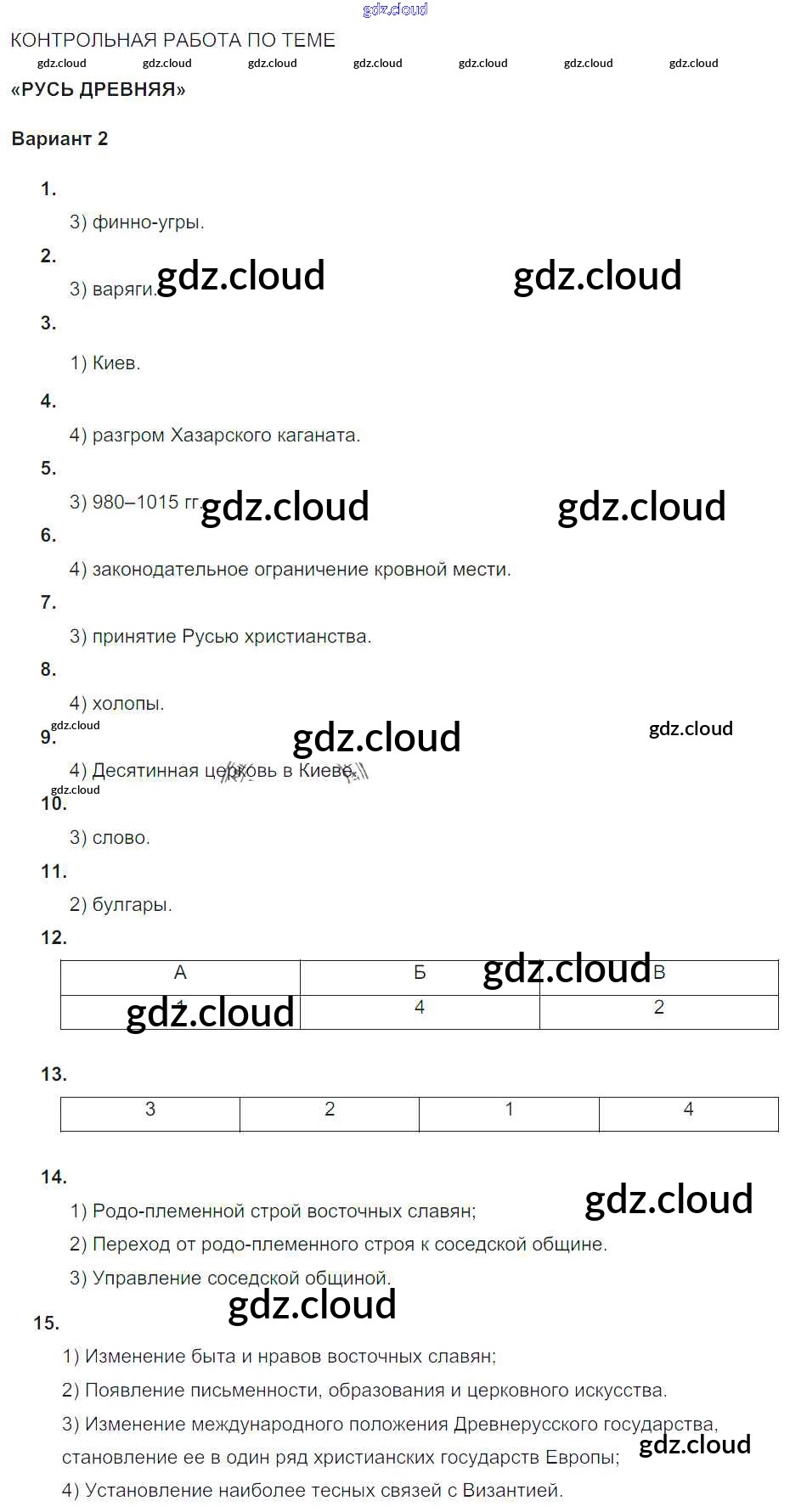 КР. Русь Древняя Ответы к теме Русь Древняя по Истории 6 класс Тематический контроль Артасов Национальное образование