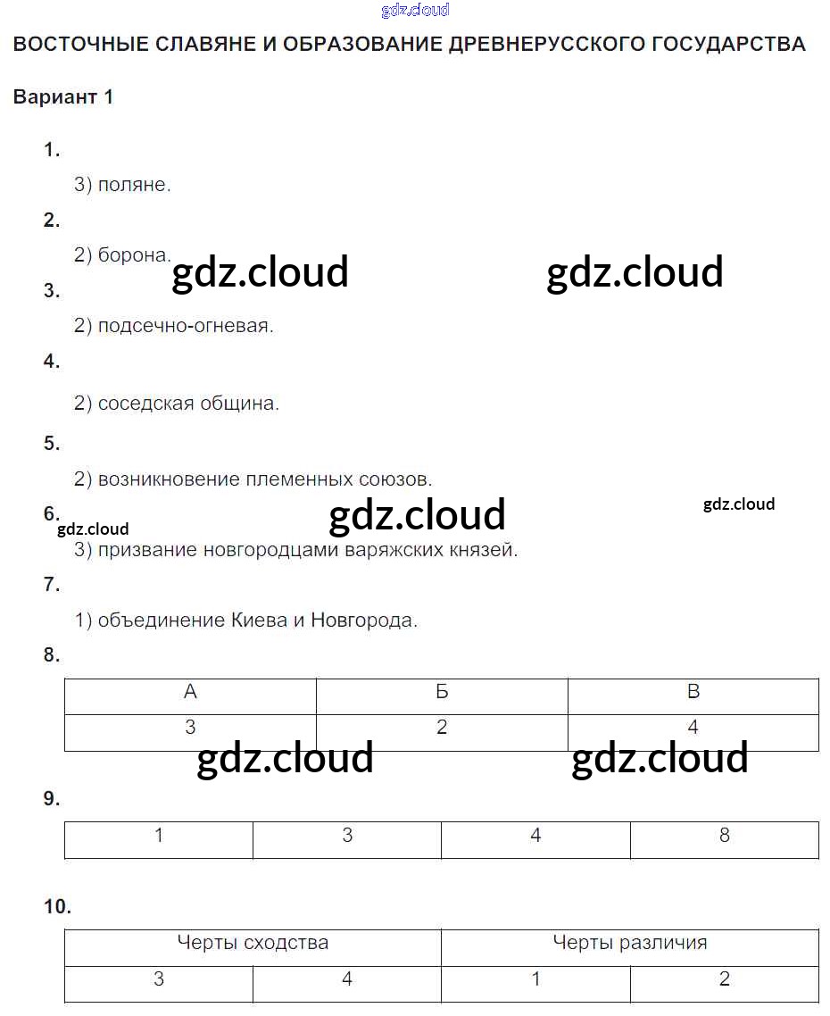 Ответ на задание Вариант-1 Тематический контроль История за 6 (шестой) класс Артасов, Гаврилина 2015