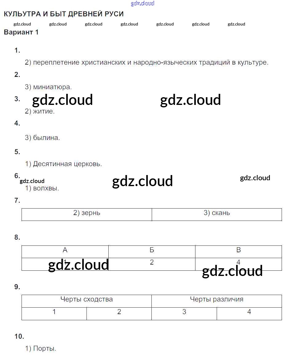 СР-№3. Культура и быт Древней Руси Ответы к теме Русь Древняя по Истории 6 класс Тематический контроль Артасов Национальное образование
