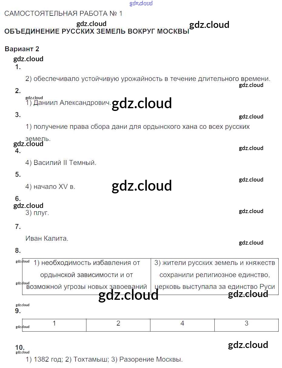 СР-№1. Объединение русских земель вокруг Москвы Ответы к теме Русь Московская по Истории 6 класс Тематический контроль Артасов Национальное образование