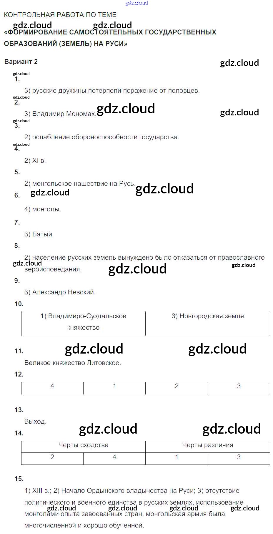 Ответ на задание Вариант-2 Тематический контроль История за 6 (шестой) класс Артасов, Гаврилина 2015
