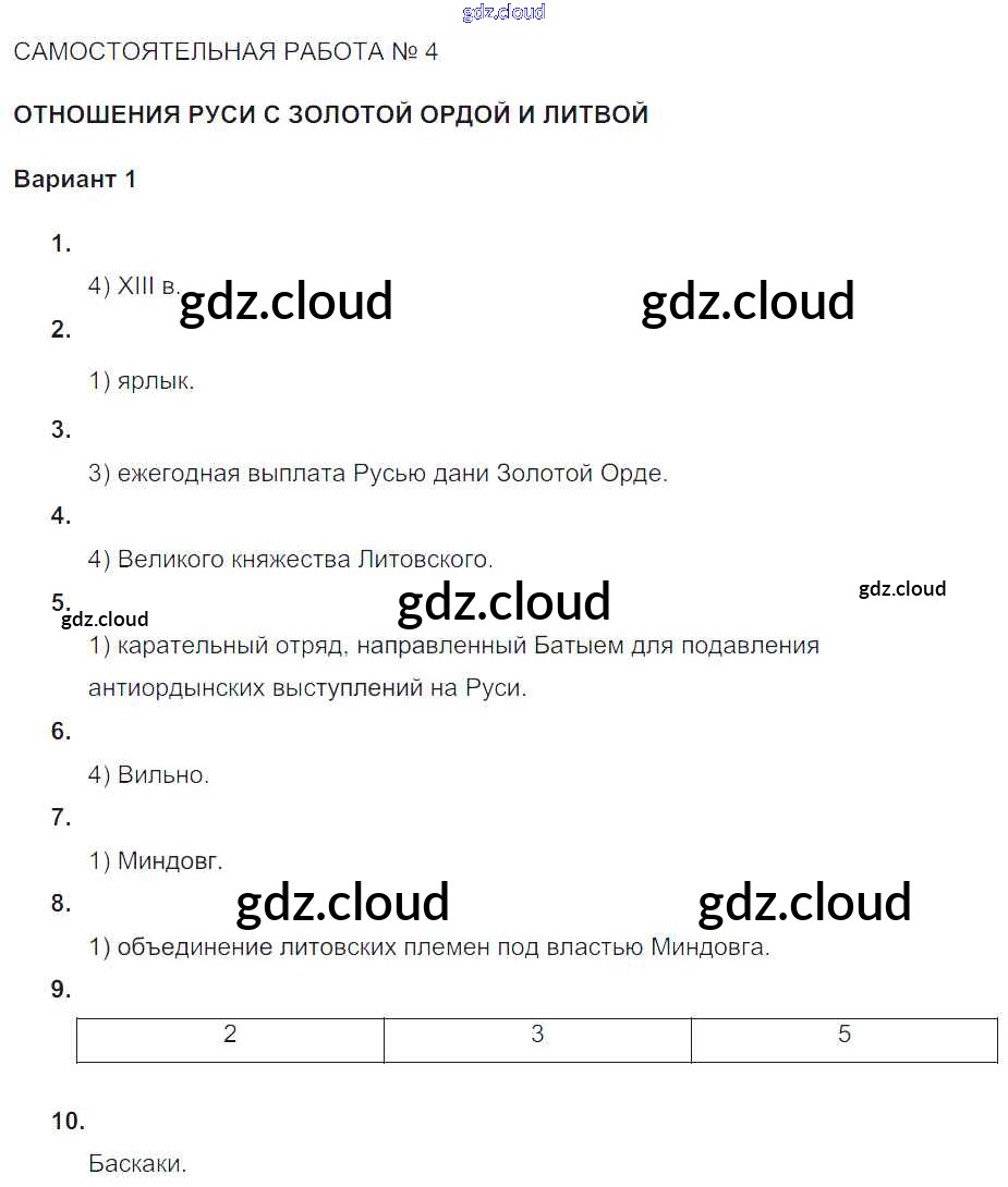 СР-№4. Отношения Руси с Золотой Ордой и Литвой Ответы к теме Формирование самостоятельных государственных образований на Руси по Истории 6 класс Тематический контроль Артасов Национальное образование