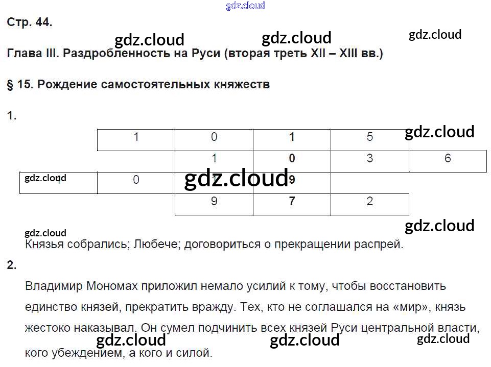 Ответ на задание стр.44 Рабочая тетрадь История за 6 (шестой) класс Баранов Алгоритм успеха 2017 ФГОС онлайн и без номера телефона.