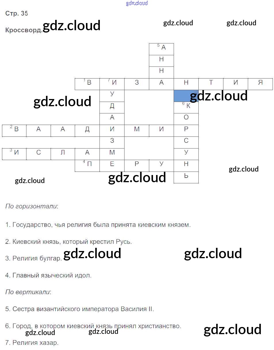 Ответ на задание стр.35 Рабочая тетрадь История за 6 (шестой) класс Чернова УМК 2017 Часть 1, 2 ФГОС онлайн и без номера телефона.