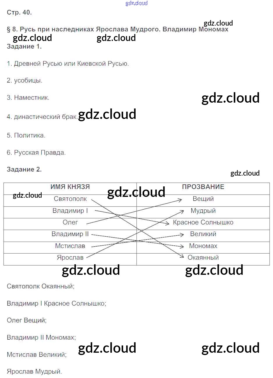 Ответ на задание стр.40 Рабочая тетрадь История за 6 (шестой) класс Чернова УМК 2017 Часть 1, 2 ФГОС онлайн и без номера телефона.