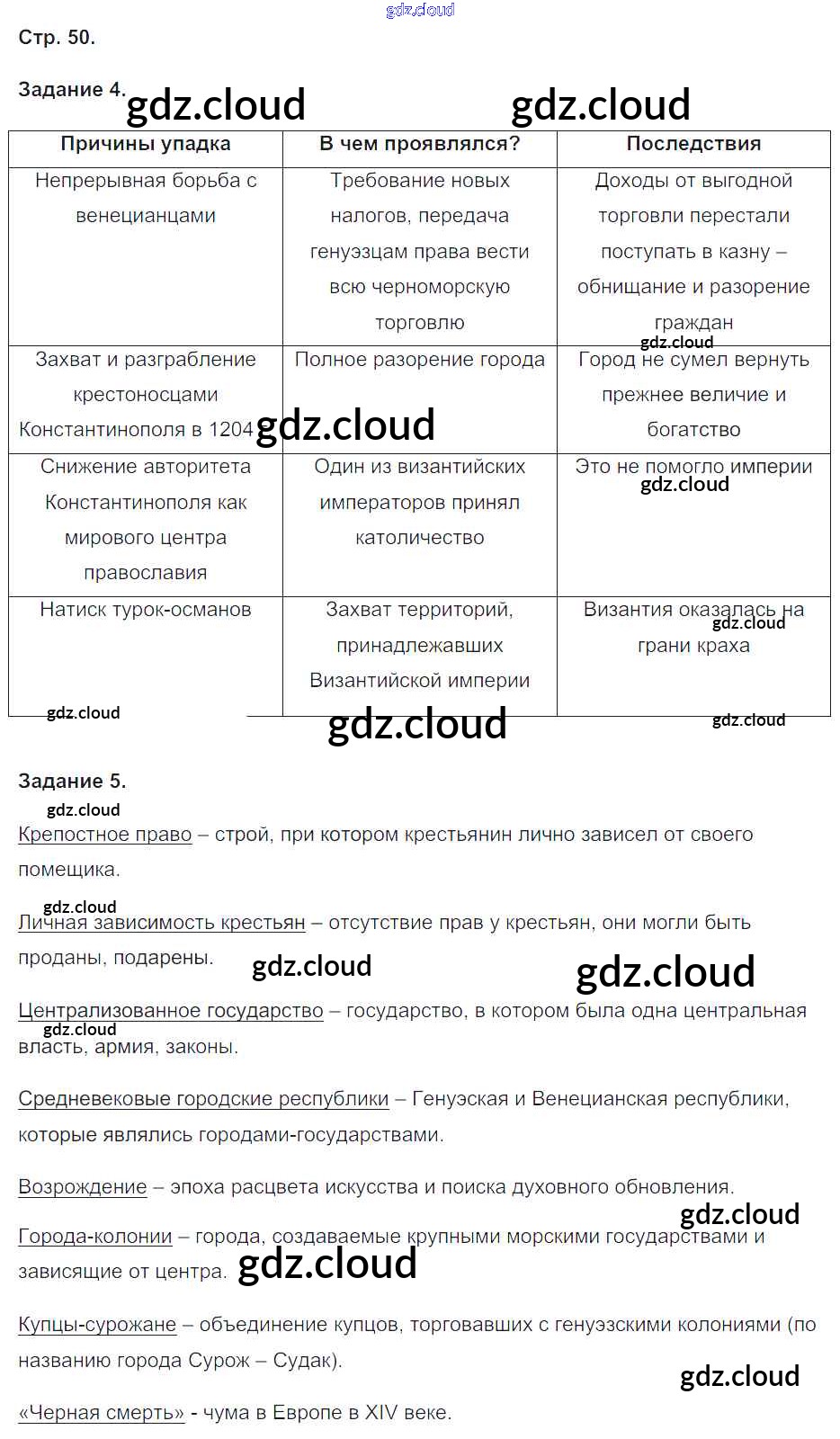 Ответ на задание стр.50 Рабочая тетрадь История за 6 (шестой) класс Чернова УМК 2017 Часть 1, 2 ФГОС онлайн и без номера телефона.