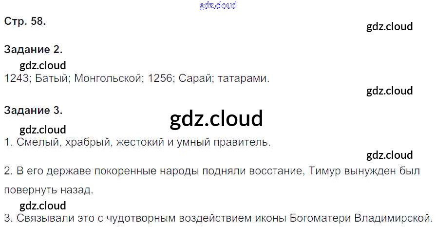 Ответ на задание стр.58 Рабочая тетрадь История за 6 (шестой) класс Чернова УМК 2017 Часть 1, 2 ФГОС онлайн и без номера телефона.