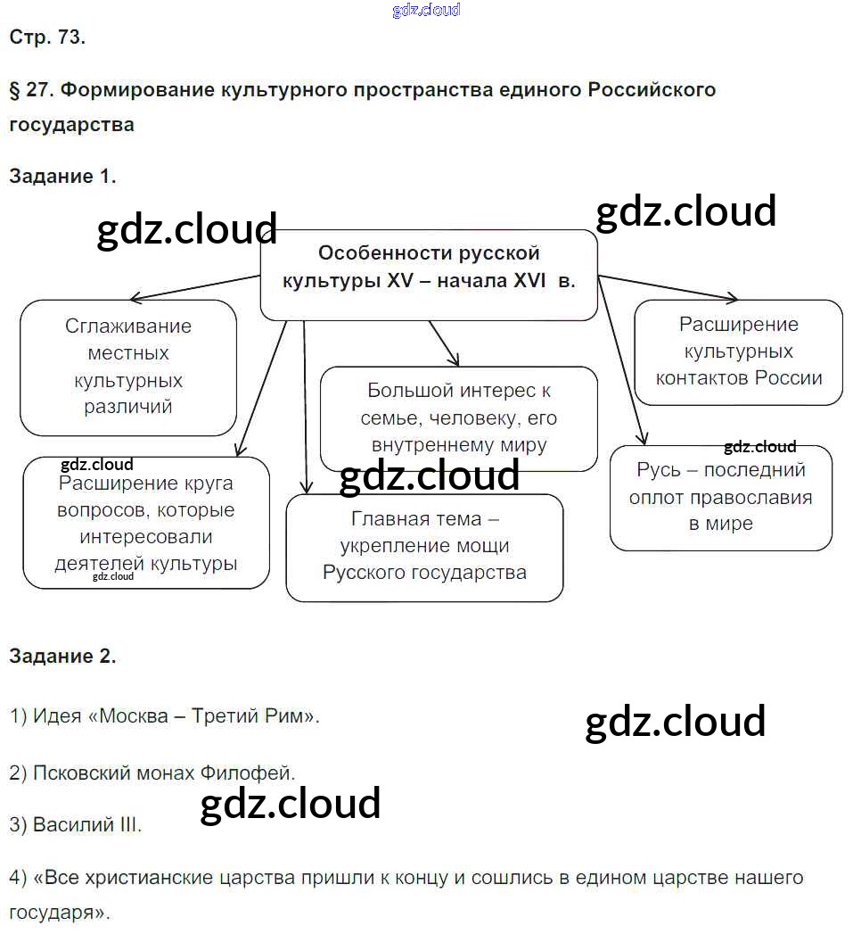 Ответ на задание стр.73 Рабочая тетрадь История за 6 (шестой) класс Чернова УМК 2017 Часть 1, 2 ФГОС онлайн и без номера телефона.