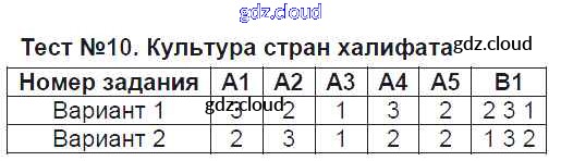 Ответ на задание Тест №10. Культура стран халифата Контрольно-измерительные материалы (КИМ) История за 6 (шестой) класс Чернова 2015