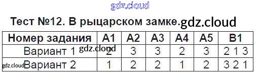 Ответ на задание Тест №12. В рыцарском замке Контрольно-измерительные материалы (КИМ) История за 6 (шестой) класс Чернова 2015