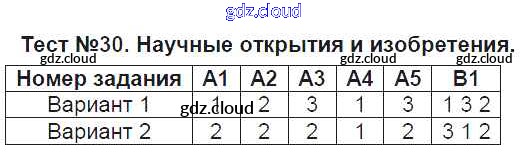 Ответ на задание Тест №30. Научные открытия и изобретения Контрольно-измерительные материалы (КИМ) История за 6 (шестой) класс Чернова 2015