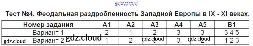 Ответ на задание Тест №4. Феодальная раздробленность Западной Европы в IX - XI веках Контрольно-измерительные материалы (КИМ) История за 6 (шестой) класс Чернова 2015