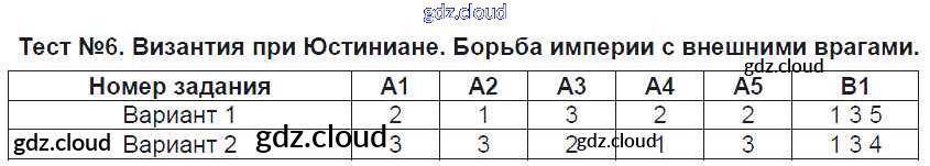 Ответ на задание Тест №6. Византия при Юстиниане. Борьба империи с внешними врагами Контрольно-измерительные материалы (КИМ) История за 6 (шестой) класс Чернова 2015
