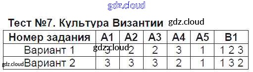 Ответ на задание Тест №7. Культура Византии Контрольно-измерительные материалы (КИМ) История за 6 (шестой) класс Чернова 2015
