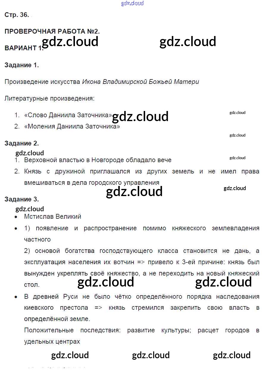 Ответ на задание 36 Контрольные работы История за 6 (шестой) класс Артасов УМК 2016 ФГОС онлайн и без номера телефона.