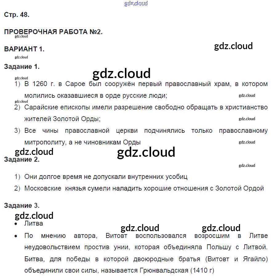 Ответ на задание 48 Контрольные работы История за 6 (шестой) класс Артасов УМК 2016 ФГОС онлайн и без номера телефона.