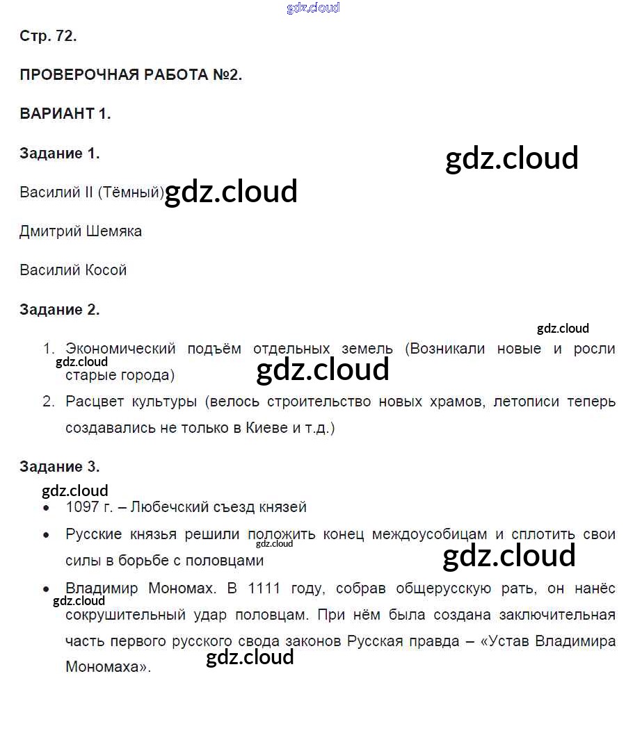 Ответ на задание 72 Контрольные работы История за 6 (шестой) класс Артасов УМК 2016 ФГОС онлайн и без номера телефона.