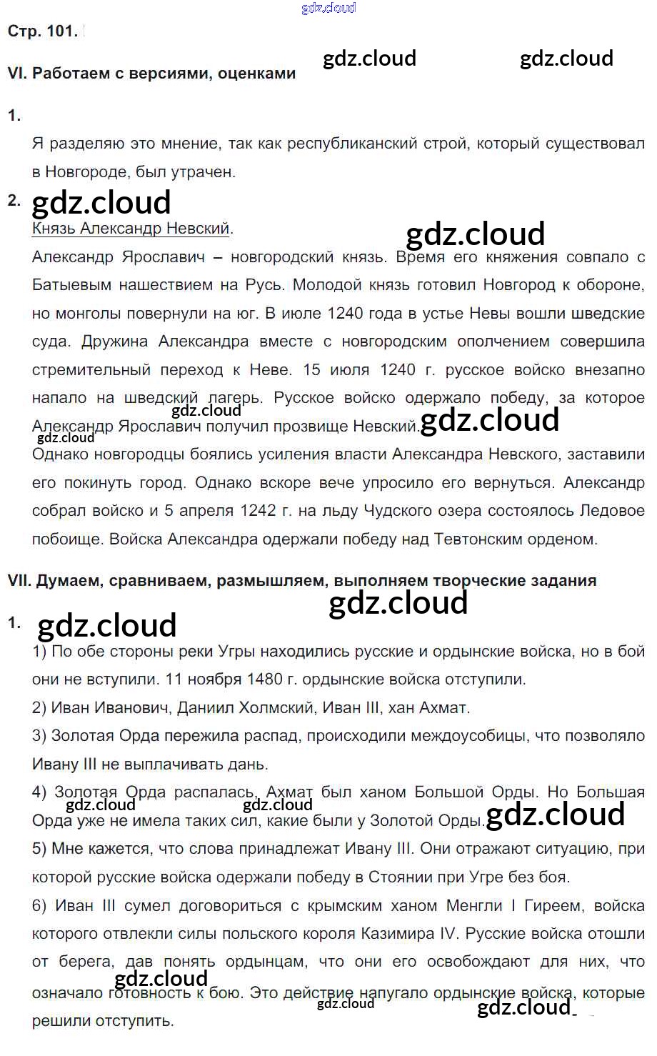 Ответ на задание стр.101 Рабочая тетрадь История за 6 (шестой) класс Гевуркова УМК 2018 ФГОС онлайн и без номера телефона.