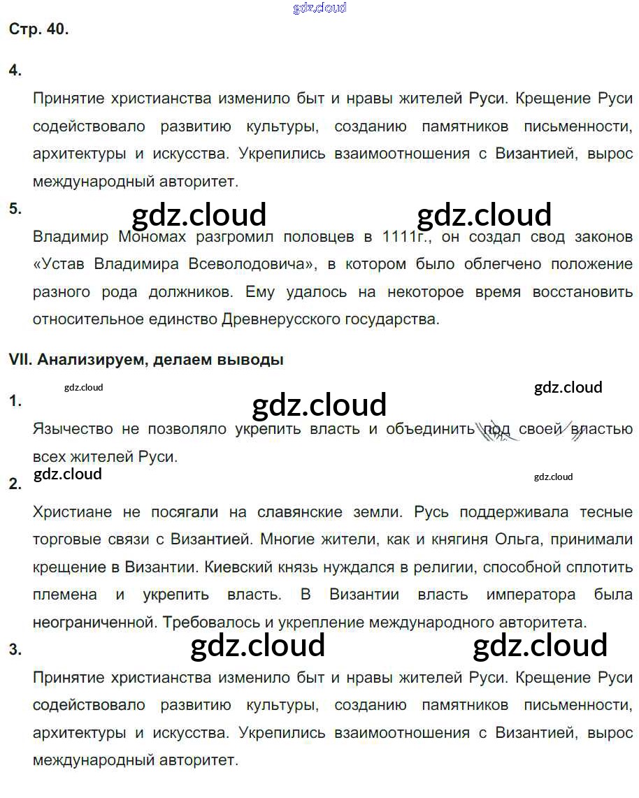 Ответ на задание стр.40 Рабочая тетрадь История за 6 (шестой) класс Гевуркова УМК 2018 ФГОС онлайн и без номера телефона.