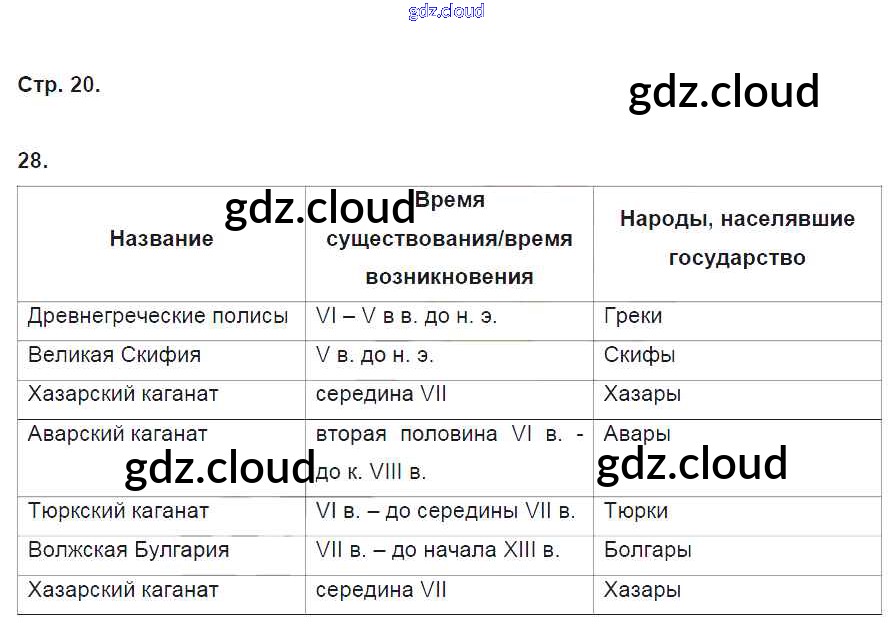 Ответ на задание стр. 20 Рабочая тетрадь История за 6 (шестой) класс Кочегаров Инновационная школа 2017