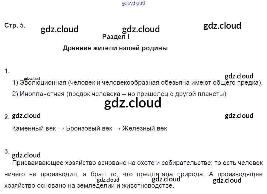 Ответы. Раздел 1. Древние жители нашей Родины по Истории 6 класс Рабочая тетрадь Кочегаров Инновационная школа Русское слово