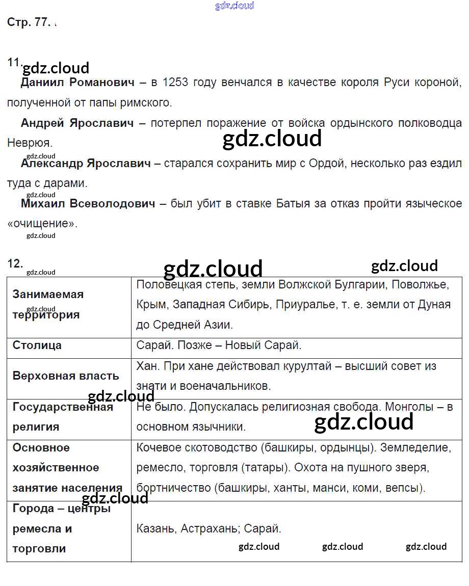 Ответ на задание стр. 77 Рабочая тетрадь История за 6 (шестой) класс Кочегаров Инновационная школа 2017