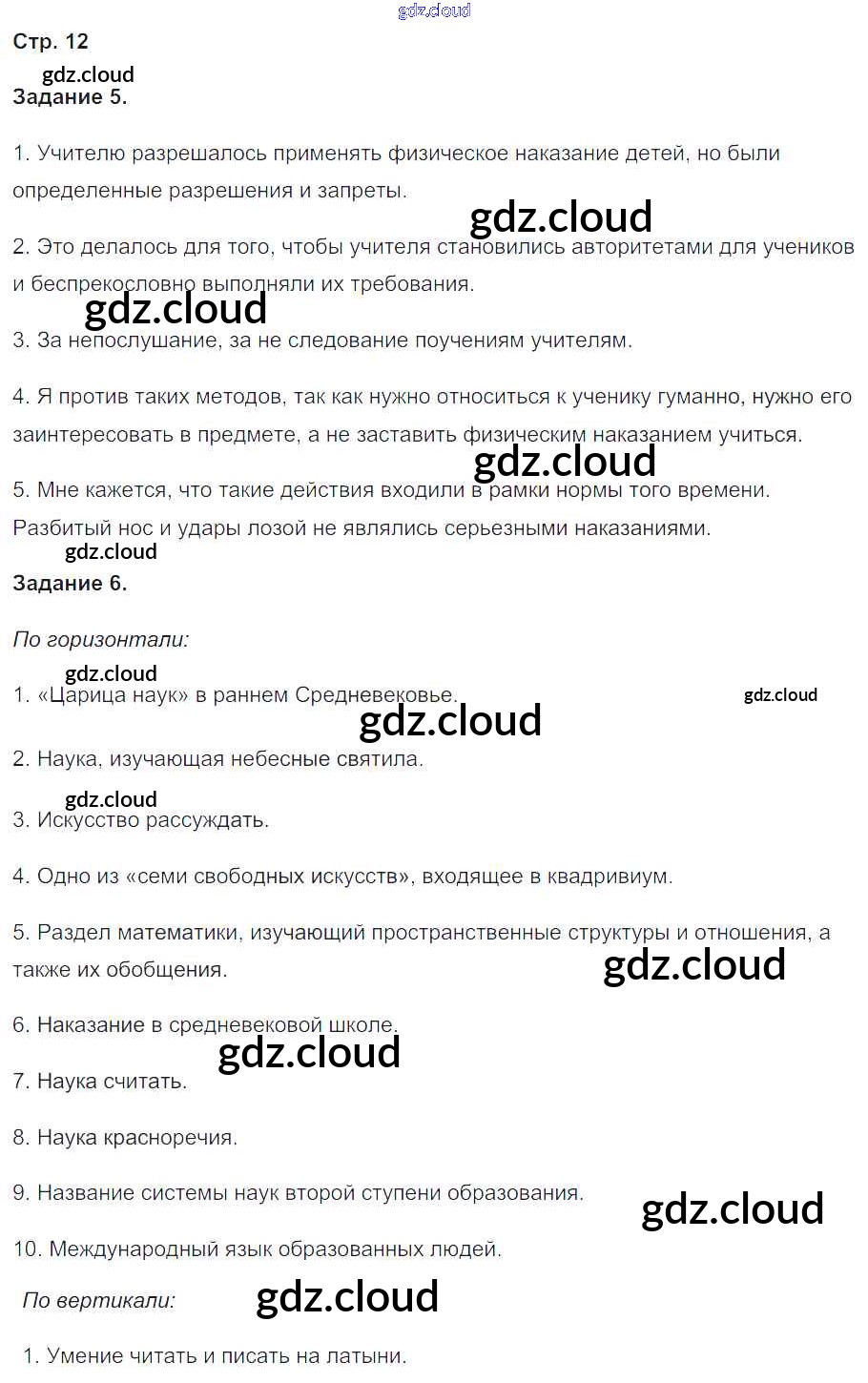 Ответ на задание 12 Рабочая тетрадь История за 6 (шестой) класс Чернова УМК 2015 ФГОС онлайн и без номера телефона.
