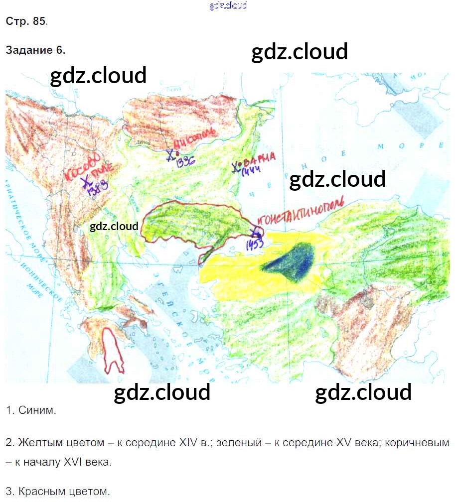 Ответ на задание 85 Рабочая тетрадь История за 6 (шестой) класс Чернова УМК 2015 ФГОС онлайн и без номера телефона.