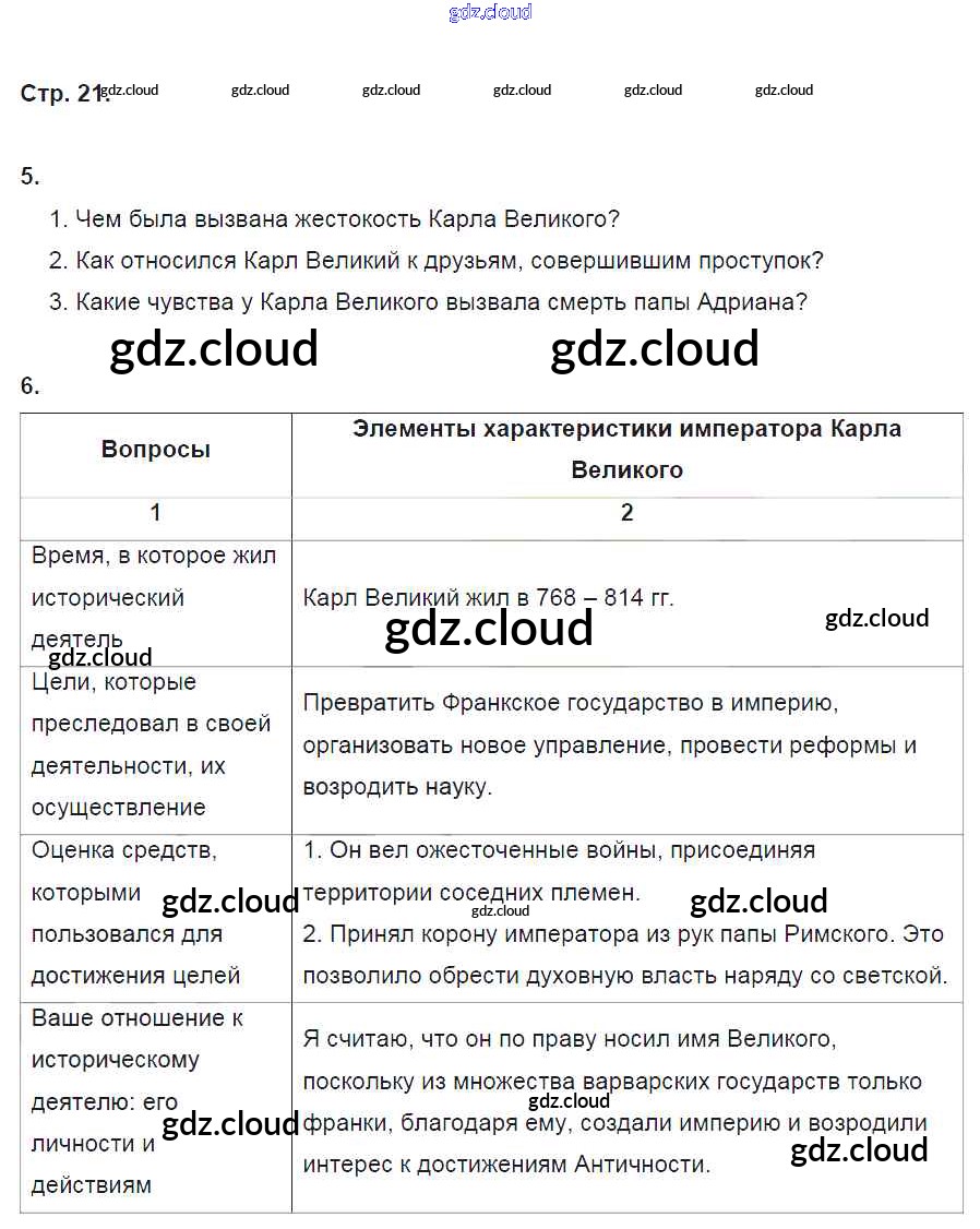 Ответ на задание 21 Рабочая тетрадь История за 6 (шестой) класс Баранов Алгоритм успеха 2017 ФГОС онлайн и без номера телефона.