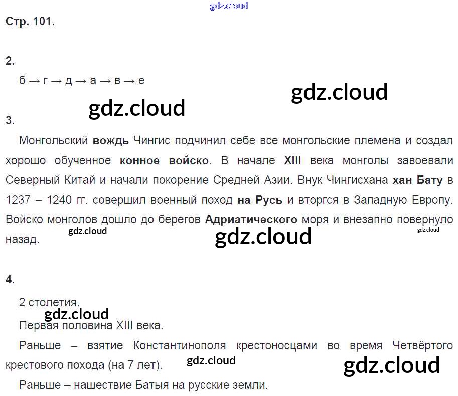Ответ на задание стр. 101 Рабочая тетрадь История за 6 (шестой) класс Петрова Инновационная школа 2017