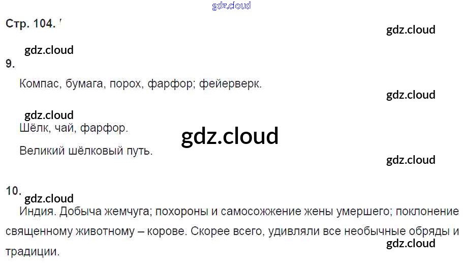 Ответы к Главе 9. Где был и и где не был Марко Поло по Истории 6 класс Рабочая тетрадь Петрова Инновационная школа Русское слово