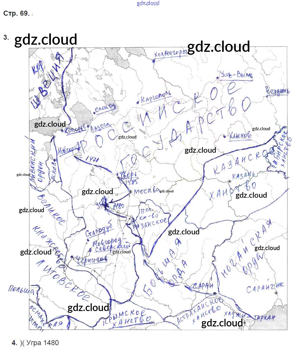 Ответ на задание стр.69 Рабочая тетрадь История за 6 (шестой) класс Клоков, Симонова Вертикаль 2018 ФГОС онлайн и без номера телефона.