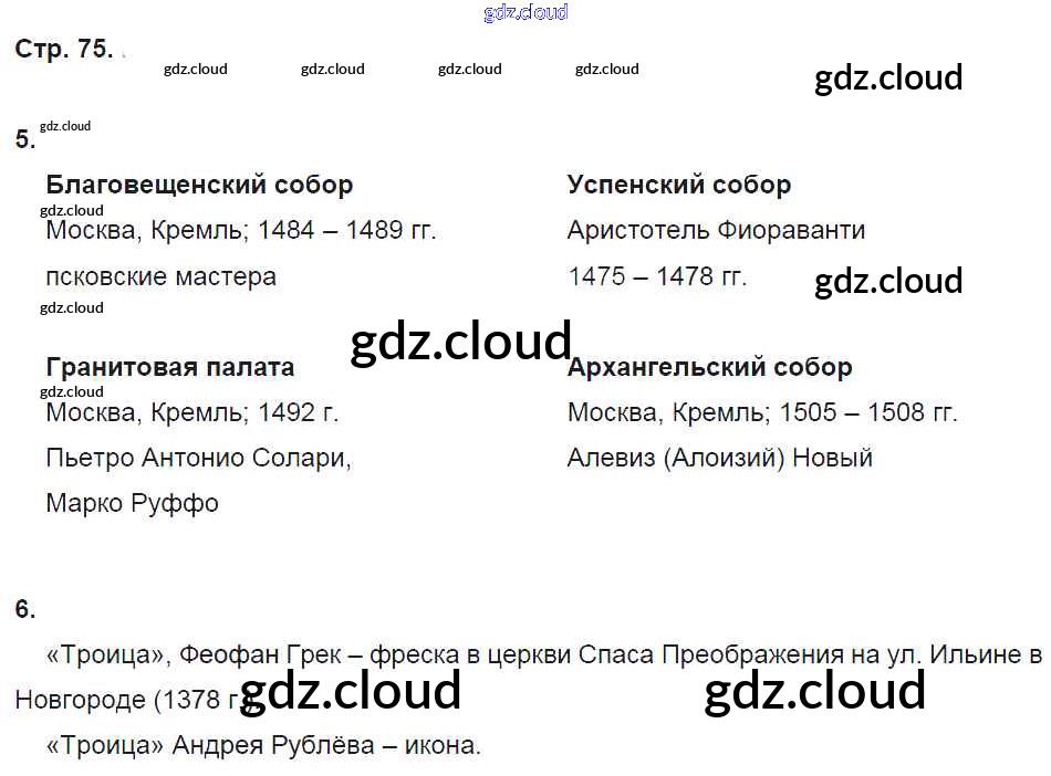Ответ на задание стр.75 Рабочая тетрадь История за 6 (шестой) класс Клоков, Симонова Вертикаль 2018 ФГОС онлайн и без номера телефона.