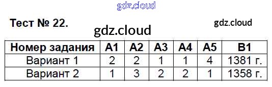 Ответ на задание Тест №22 Контрольно-измерительные материалы (КИМ) История за 6 (шестой) класс Волкова 2017 ФГОС онлайн и без номера телефона.