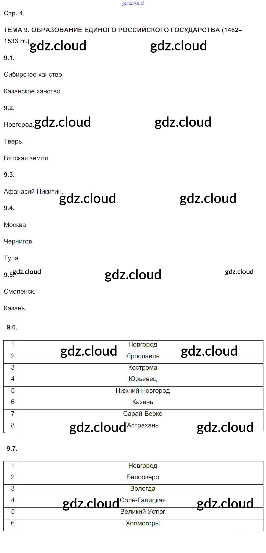 Ответы к Проверочным творческим работам по истории России с древнейших времен - начало XVI века по Истории 6 класс Контурные карты Колпаков Аст/Астрель