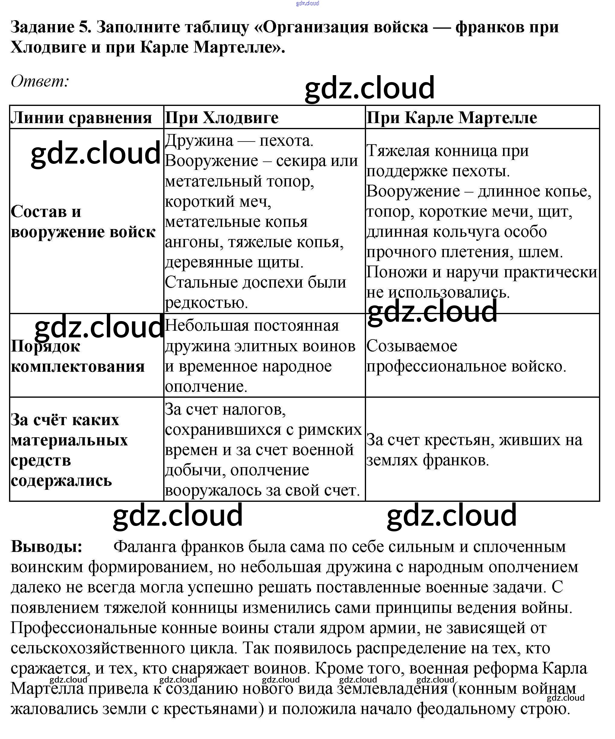 Ответы к § 1 «Образование варварских королевств. Государство франков в VI—VIII веках» по Истории 6 класс Рабочая тетрадь Крючкова Просвещение