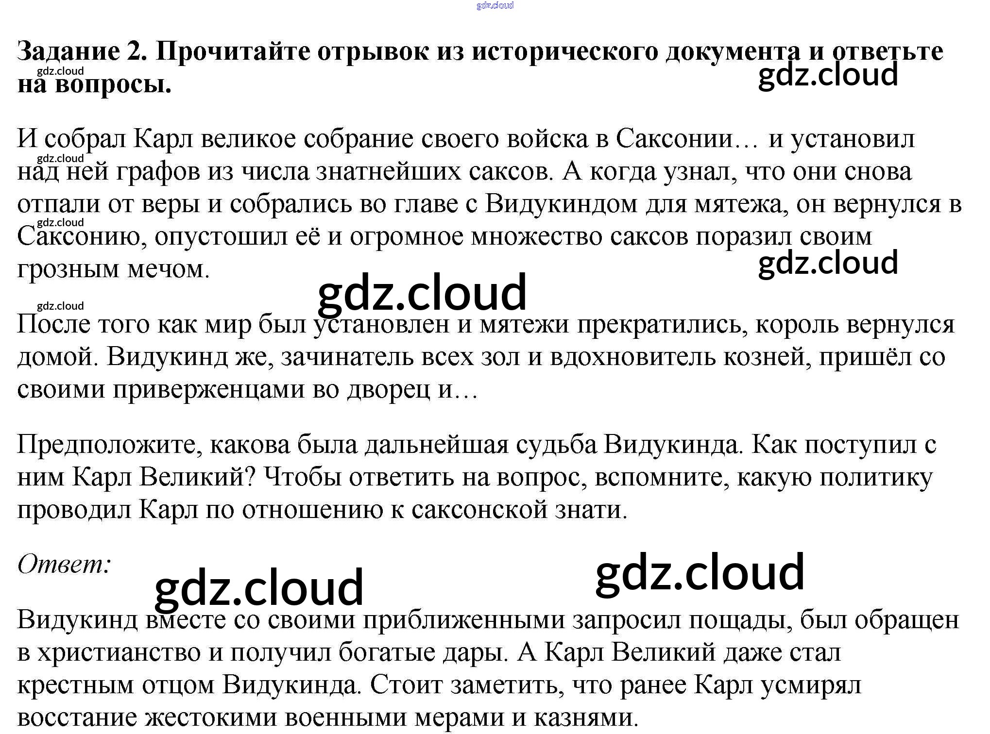 Ответ на задание 2 Рабочая тетрадь История за 6 (шестой) класс Крючкова 2015